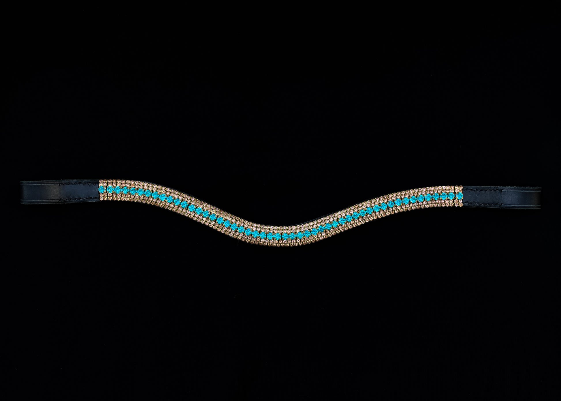 Tämän otsapannan sävymaailma on harmoninen yhdistelmä raikkautta ja lämpöä. Keskiosaa hallitsevat kirkkaanturkoosit Cerulean-timantit, joiden rinnalla loistavat ruusukultaiset Rose Gold -timantit