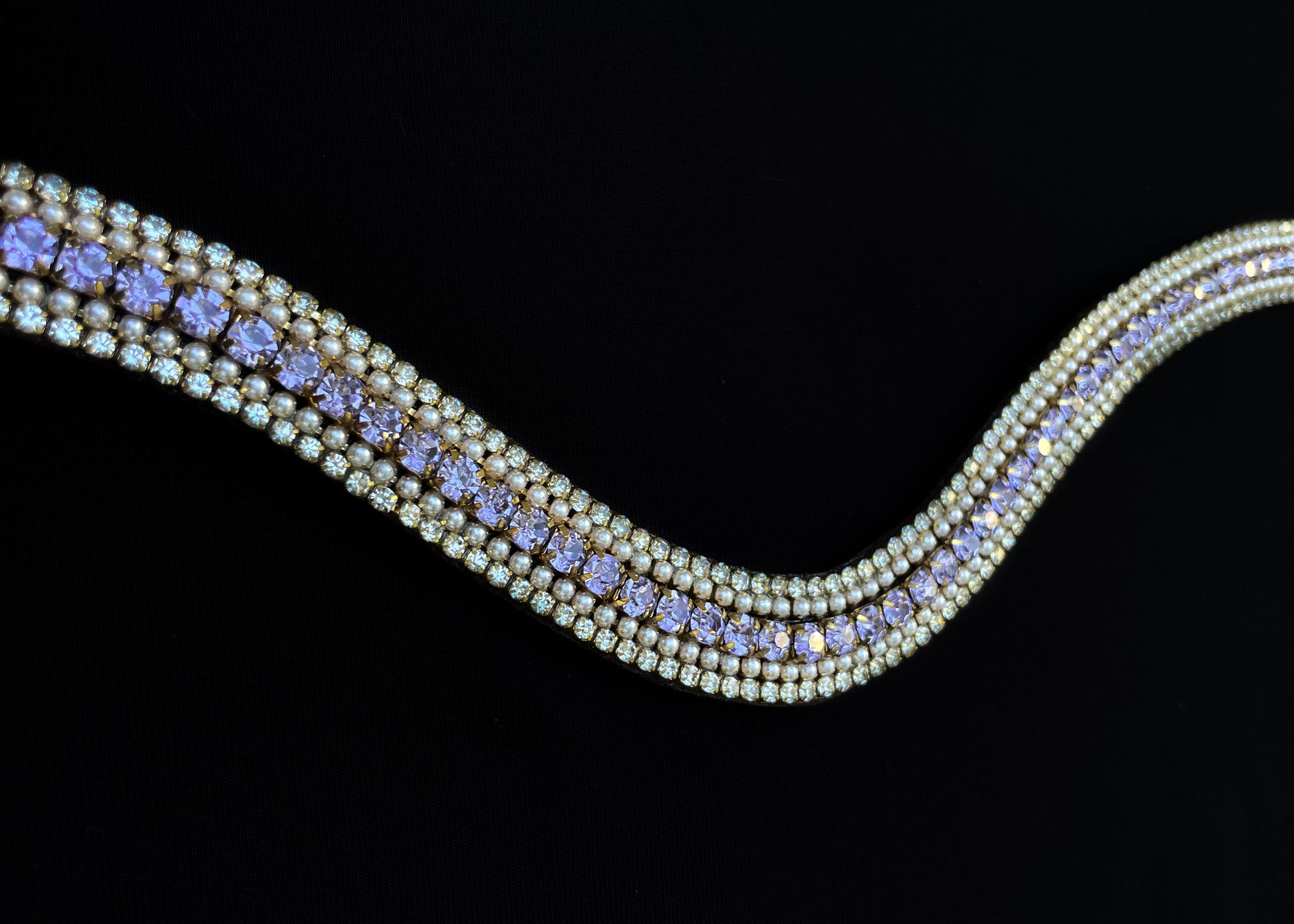 Tämän otsapannan keskiössä loistavat kauniit vaalean liilat Lavender-timantit. Niitä kehystävät pienet Pearl-helmet ja kirkkaat Crystal-timantit, jotka yhdessä luovat tyylikkään kokonaisuuden.