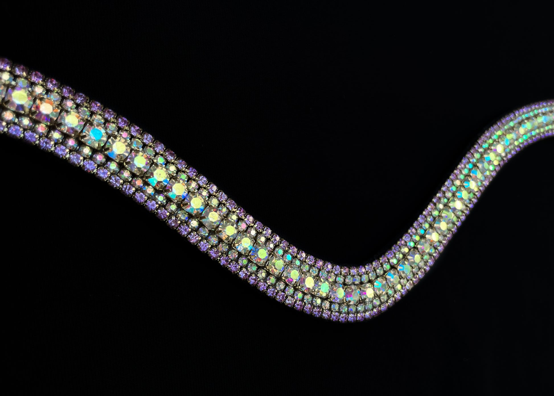 Tämän otsapannan keskellä kimmeltävät monisävyiset Iridescent-timantit, joita reunustavat pienemmät Iridescent- ja Lavender-timantit. Tämä otsapanta hohtaa kauniisti eri väreissä valon kulmasta riippuen!
