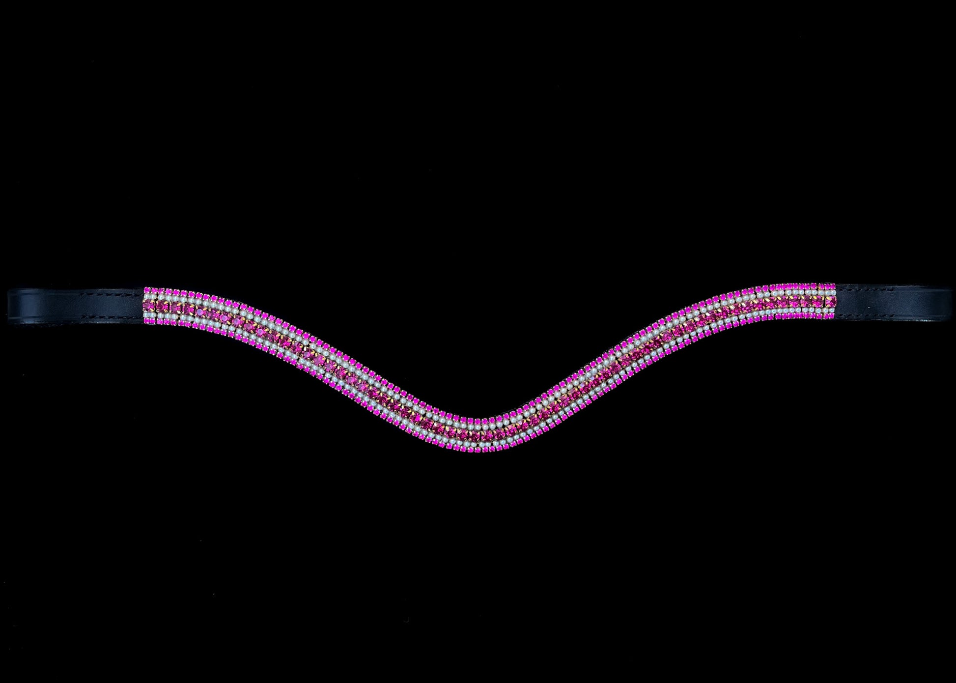 Tämän otsapannan katseenvangitsijana loistavat fuksian sävyiset timantit, jotka tuovat pantaan näyttävää väriä ja ylellistä ilmettä. Timanttien lomassa hohtavat vaaleat helmet, jotka pehmentävät kokonaisuutta ja luovat tyylikkään kontrastin.